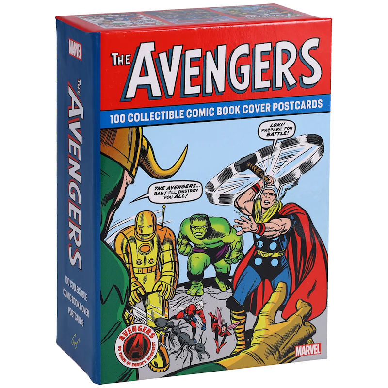 AVENGERS FANS ASSEMBLE! Perfect for Marvel fans of all ages, this collectible box of 100 postcards is a tribute to the Avengers through the comic book covers of their fan-favourite adventures.