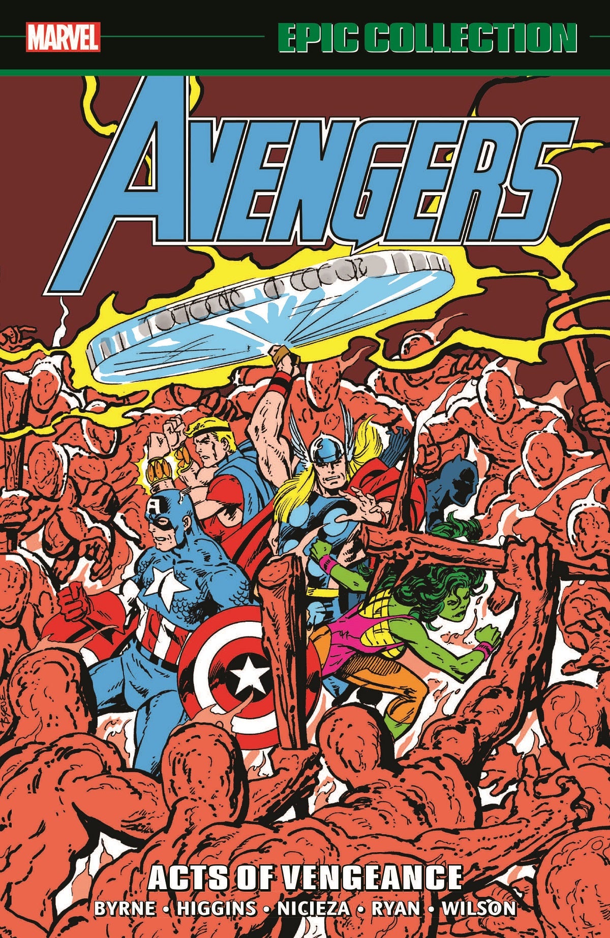 Villains assemble! A new era begins for the Avengers with a fresh approach and a revamped roster including Quasar, She-Hulk and the Black Panther! But the team is soon pushed to its limits when the Lava Men attack! And when the Eternals' home of Olympus vanishes, the trail leads to the Negative Zone. Can Sersi help the Avengers save Gilgamesh and locate her people? Then, a host of Marvel's biggest bads join forces - and swap enemies! Thrown off-balance by an onslaught of unfamiliar foes, Avengers East and West must face Freedom Force, the U-Foes, the Mole Man and more - and discover the true architect of these Acts of Vengeance! And when the space pirate Nebula schemes to destroy the universe, will Spider-Man save the day - and join the team?!