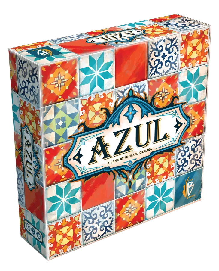 In the game Azul, players take turns drafting colored tiles from suppliers to their player board. Later in the round, players score points based on how they've placed their tiles to decorate the palace. Extra points are scored for specific patterns and completing sets; wasted supplies harm the player's score. The player with the most points at the end of the game wins.