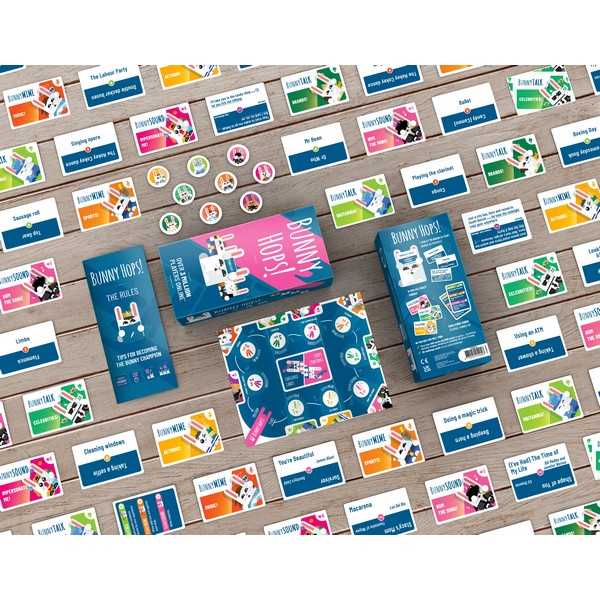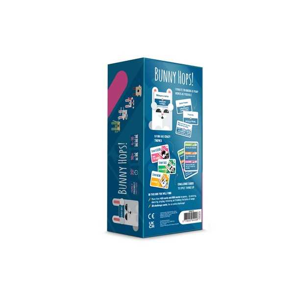 Need to liven up the party? It's time to get some Bunny Hops! into your life! The perfect game for to shake things up before a night out or for the next family or friends games night! Simply get into teams, place a card on your forehead and try to guess the word, celebrity or song which is on there. Your team mates will help to describe, mime or sing to help give you clues. The team who collects the most points after each round on the board wins!